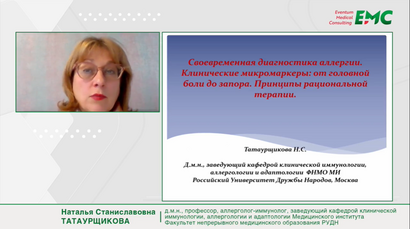 Наталья Станиславовна Татаурщикова, доктор медицинских наук, профессор, аллерголог-иммунолог, заведующий кафедрой клинической иммунологии, аллергологии и адаптологии Медицинского института Факультет непрерывного медицинского образования РУДН - Своевременная диагностика аллергии в детском возрасте. Клинические микромаркеры: от головной боли до запора. Принципы рациональной терапии.