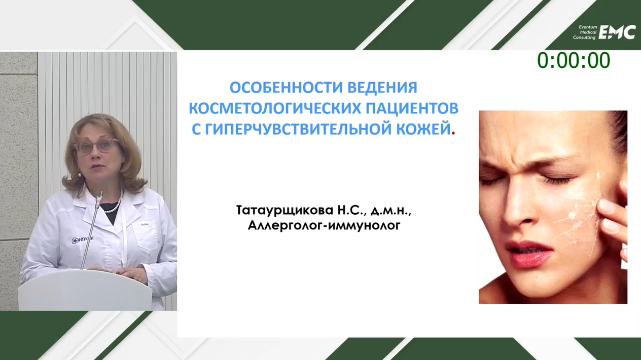 Наталья Станиславовна Татаурщикова, д.м.н., профессор, заведующий кафедрой клинической иммунологии, аллергологии и адаптологии Медицинского института ФНМО РУДН, руководитель центра аллергологии и иммунологии Институт пластической хирургии и косметологии - Стресс-индуцированные состояния кожи и методы их коррекции.