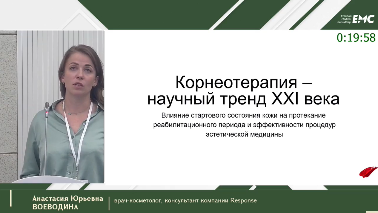 Сергей Иванович Суркичин, к.м.н., доцент кафедры дерматовенерологии и косметологии ФГБУ ДПО ЦГМА УДП - Корнеотерапия – научный тренд XXI века. Влияние состояния кожи на эффективность и протекание реабилитационного периода от процедур эстетической медицины.