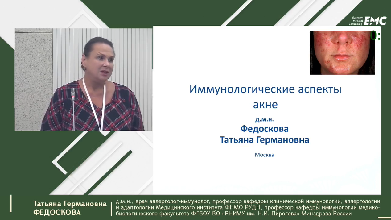 Наталья Владимировна Грязева, к.м.н., доцент, врач дерматовенеролог ФГБУ «Поликлиника №1» УД Президента РФ - Иммунологические аспекты акне.