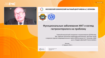 Дмитрий Станиславович Бордин, д.м.н., главный внештатный специалист гастроэнтеролог, Заведующий отделом патологии поджелудочной железы, желчевыводящих путей и патологии верхних отделов пищеварительного тракта ГБУЗ Московский клинический научно-практический центр им. А.С. Логинова ДЗМ - Функциональные заболевания ЖКТ и психосоматический синдром