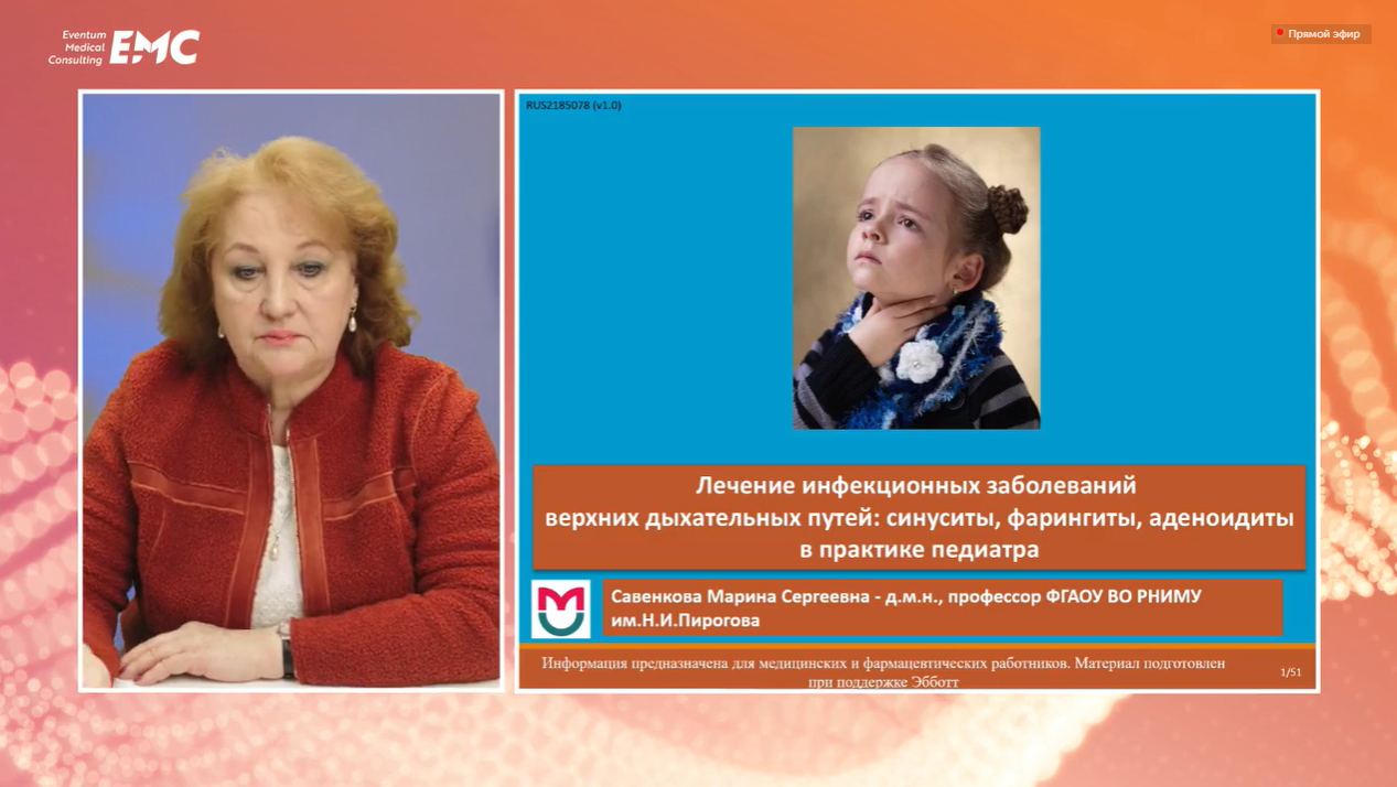 Марина Сергеевна Савенкова - Актуальные вопросы противовирусной терапии респираторных инфекций у детей в период пандемии COVID-19.