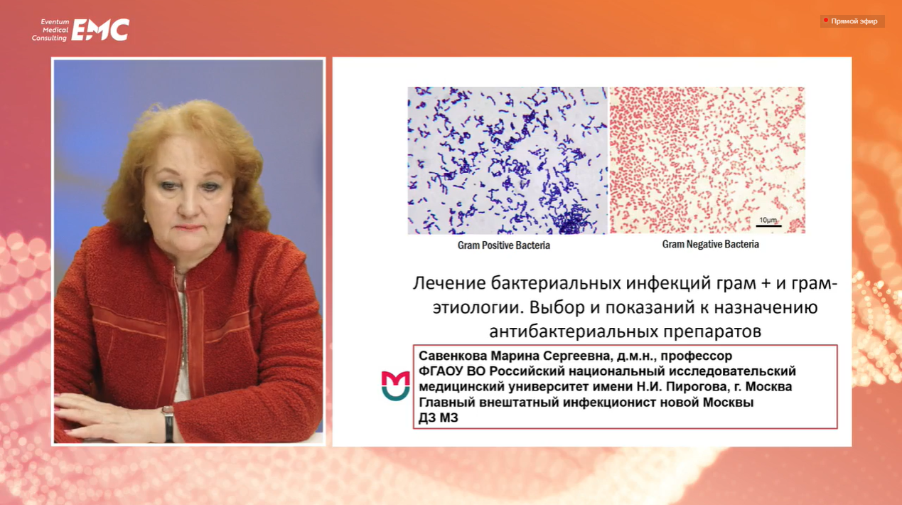 Марина Сергеевна Савенкова - Лечение бактериальных инфекций грамм (+ ) и грамм (- ) этиологии. Выбор и показания к назначению антибактериальных препаратов. В чем различия?
