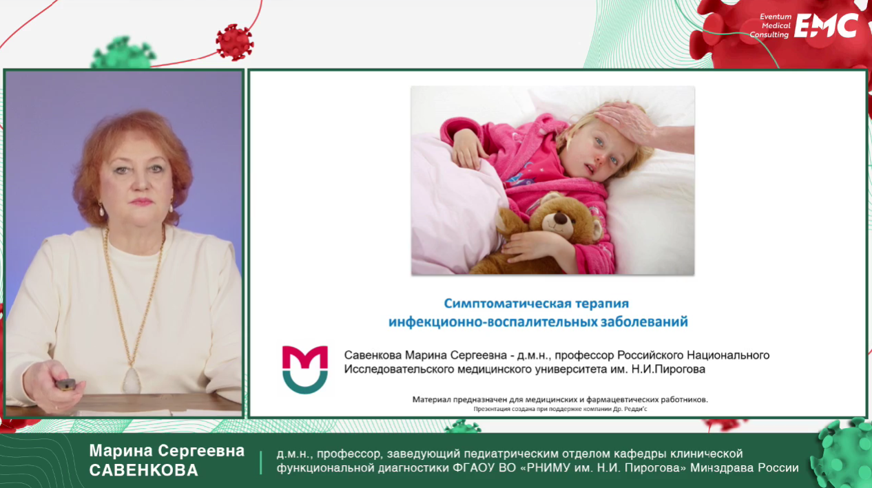 Марина Сергеевна Савенкова, доктор медицинских наук, профессор, заведующий педиатрическим отделом кафедры клинической функциональной диагностики ФГАОУ ВО «РНИМУ им. Н.И. Пирогова» Минздрава России - Симптоматическая терапия воспалительных заболеваний