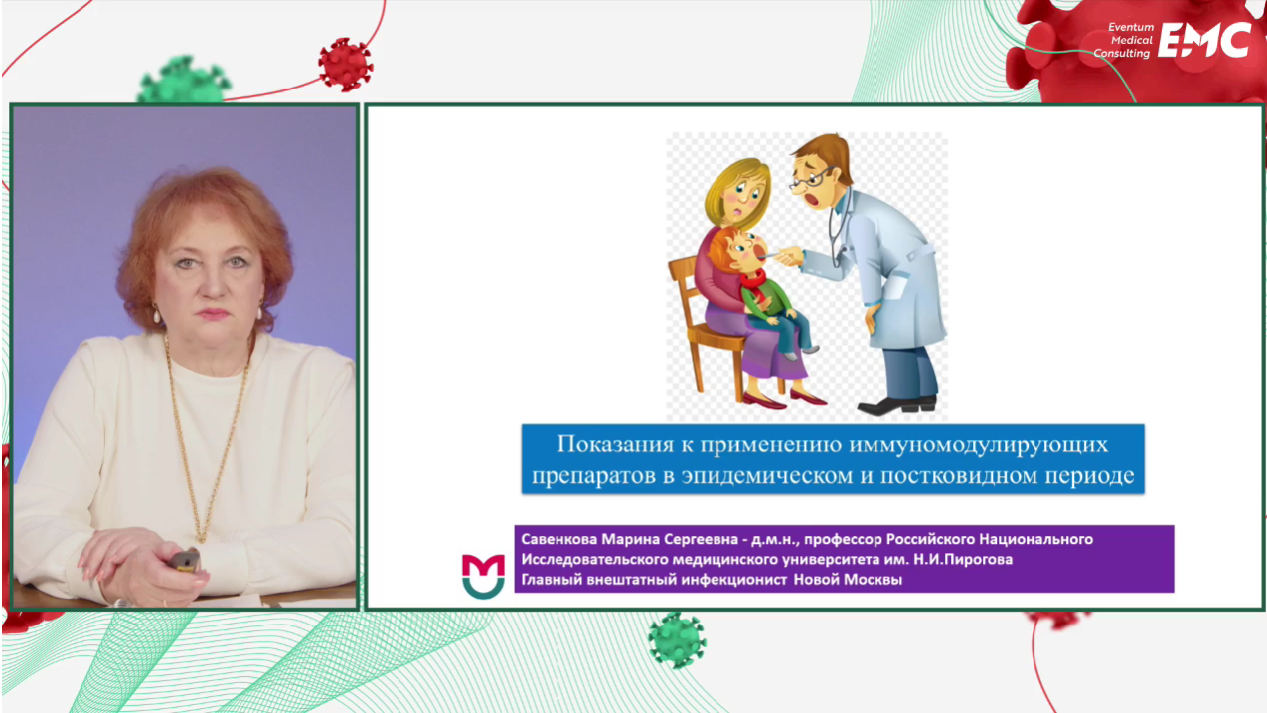 Марина Сергеевна Савенкова, доктор медицинских наук, профессор, заведующий педиатрическим отделом кафедры клинической функциональной диагностики ФГАОУ ВО «РНИМУ им. Н.И. Пирогова» Минздрава России - Индукторы интерферона – показания и лечение в остром и восстановительном периоде