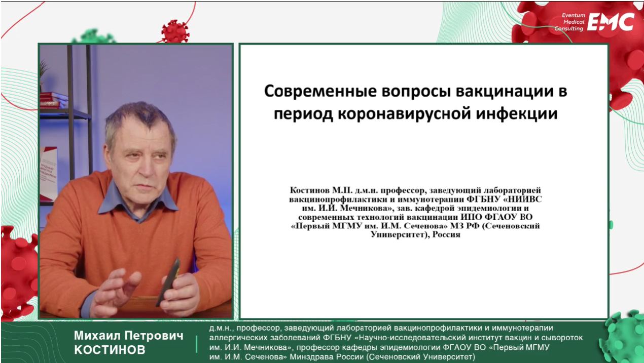 Михаил Петрович Костинов, доктор медицинских наук, профессор, заведующий лабораторией вакцинопрофилактики и иммунотерапии аллергических заболеваний ФГБНУ «Научно-исследовательский институт вакцин и сывороток им. И.И. Мечникова», профессор кафедры эпидемиологии ФГАОУ ВО «Первый МГМУ им. И.М. Сеченова» Минздрава России (Сеченовский Университет)