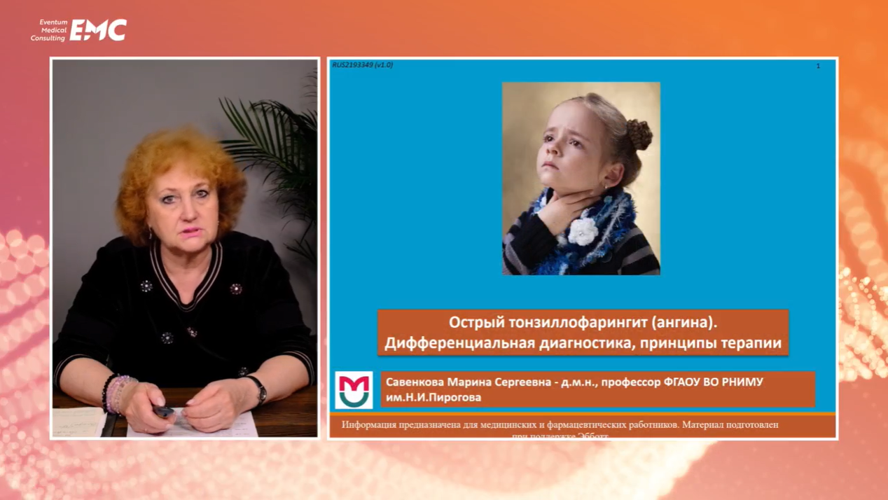 Марина Сергеевна Савенкова - Острый тонзиллофарингит (ангина). Дифференциальная диагностика, принципы терапии.