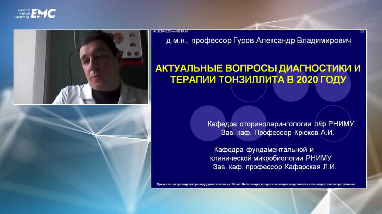 - Актуальные вопросы диагностики и терапии тонзиллитов в 2020г.